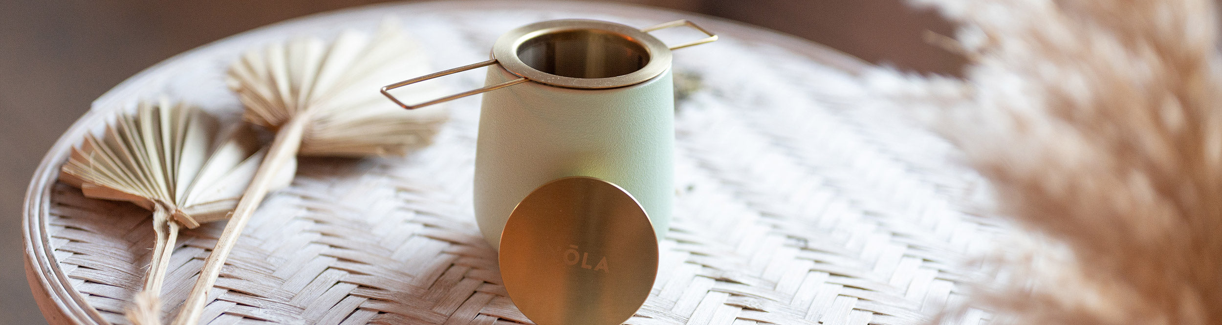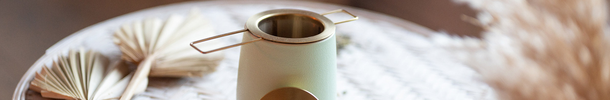 Einklappbares Tee-Sieb mit Deckel (gold)